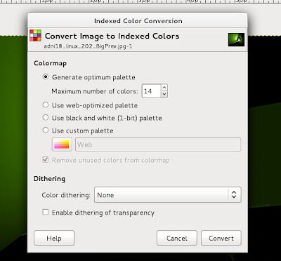 A window will come as shown below. Select “Generate Optimum Palette” and set the maximum number of colors to 14. When done, select convert.